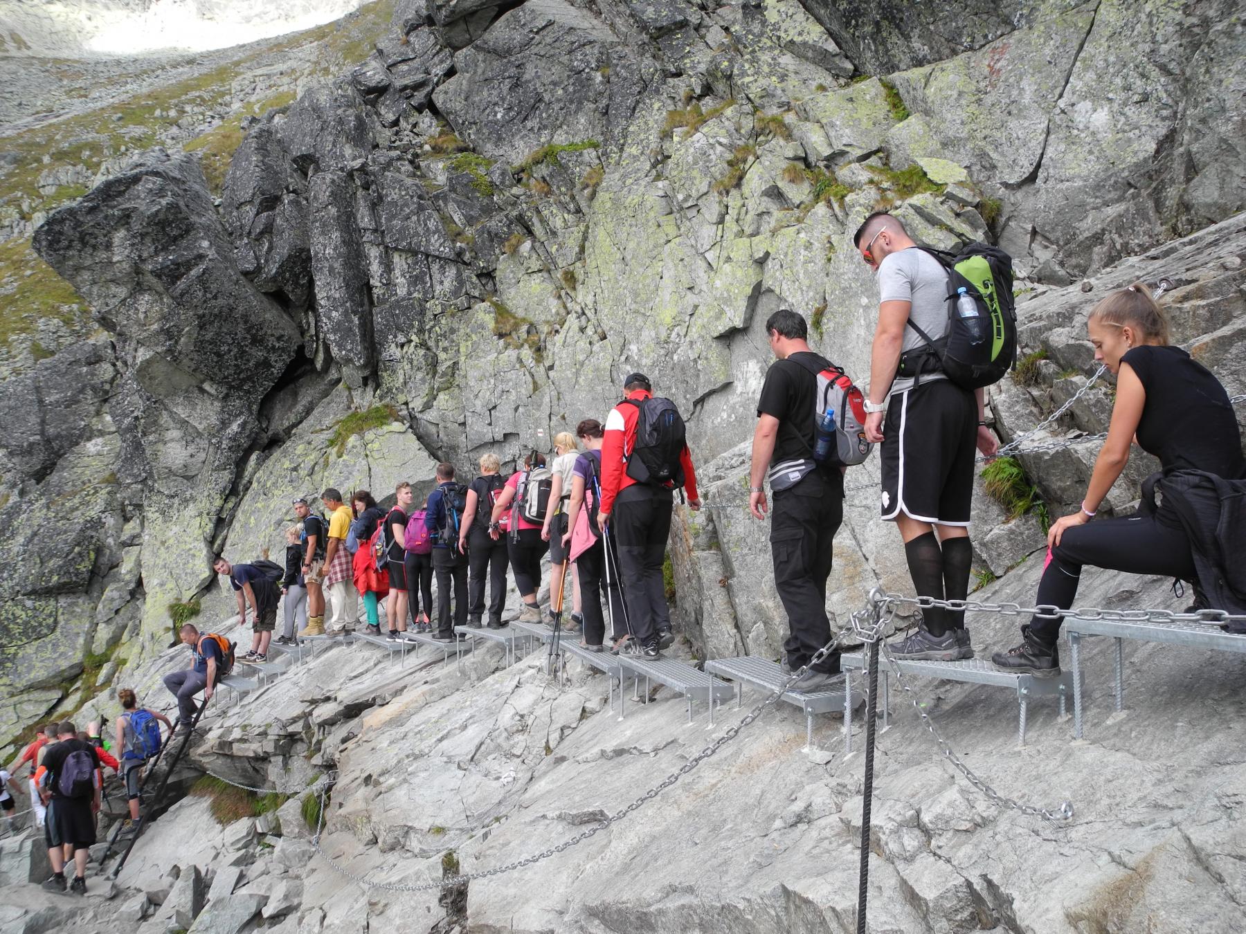 From the parking in Tatranská Polianka we start hiking along the Velický potok stream to Sliezsky dom (mountain hotel), where it is possible to have a snack. We continue along Velické pleso tarn and Večný dážď waterfall, then above Velický waterfall until we reach Kvetnica. This is where the Velická valley opens up to us. We continue under the massif of the Gerlachovský štít peak and along Dlhé pleso tarn to Poľský hrebeň saddle. The difficult section secured by chains starts here under the saddle. The final ascent to the top includes a short section secured with chains. At the top we can enjoy a beautiful panoramic view of all the dominant peaks of the High Tatras.