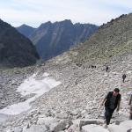 The first part of the final climb leads to Váha saddle (2,340 m) from where we can enjoy of a picturesque view to the Bielovodská dolina valley and to Galéria Ganku (2,461 m). When in the saddle, we turn to climb up the ridge and we get under the peak of the Rysy mountains (2,503 m) by a narrow traverse. After about one hour of walking from the mountain hut, we can benefit from a magnificent view of Morské oko tarn, Czarny staw (the tarn at the Polish side) and adjacent peaks from the top of the mountain. It is possible to return the same way.